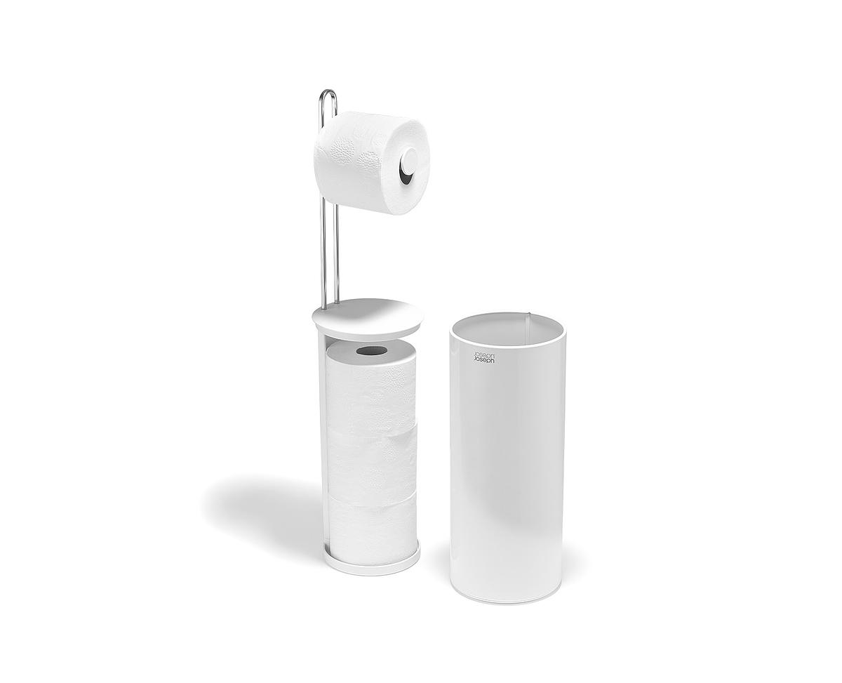 Навіть рулонам туалетного паперу потрібно місце. Цей білий окремий тримач для туалетного паперу — ідеальне рішення для зберігання запасних рулонів.