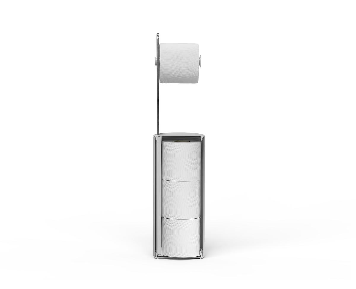 У ньому поміщається один рулон, що використовується, і три запасних у гігієнічному, прихованому відсіку.
