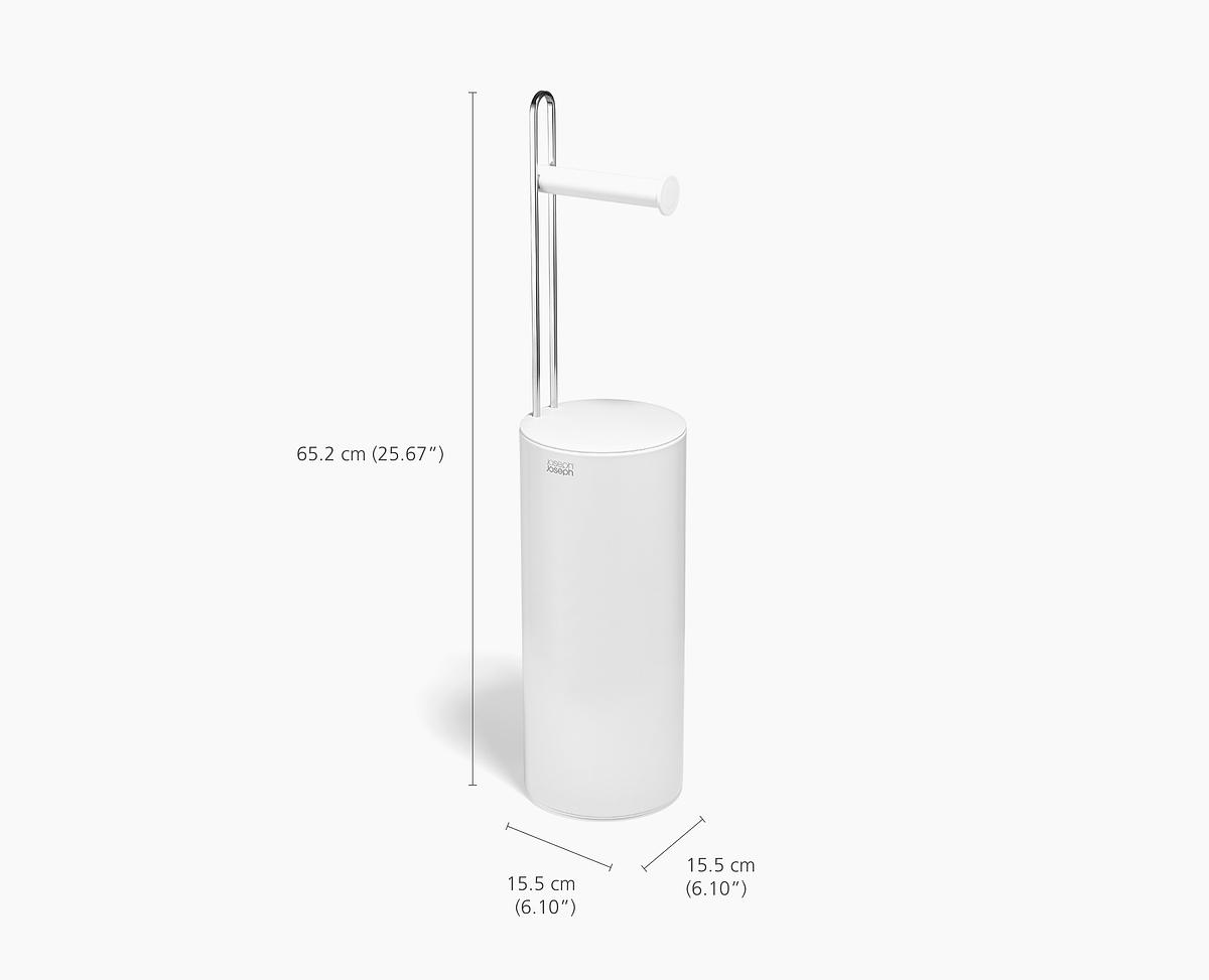 - Пропонує непомітне і гігієнічне рішення для зберігання рулонів туалетного паперу.