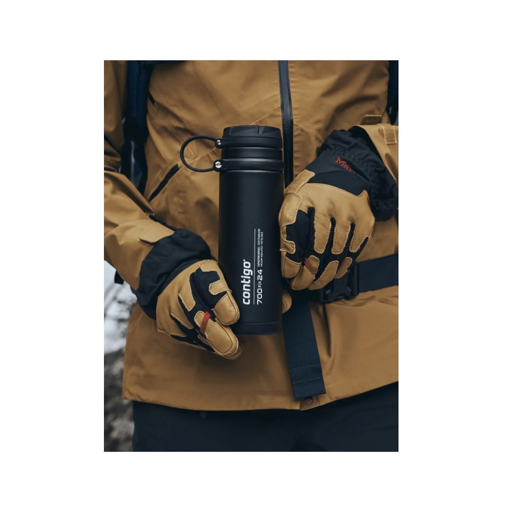 - Корпус з матовим покриттям допомагає термопляшці Contigo надійно сидіти в руці.