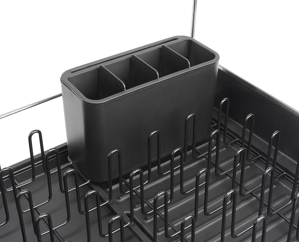 Вона оснащена тримачем для келихів, який запобігає контакту келихів із сушаркою для оптимального зливу води та безпеки, а також знімними внутрішніми решітками та рухомим носиком, що направляє воду прямо в раковину.