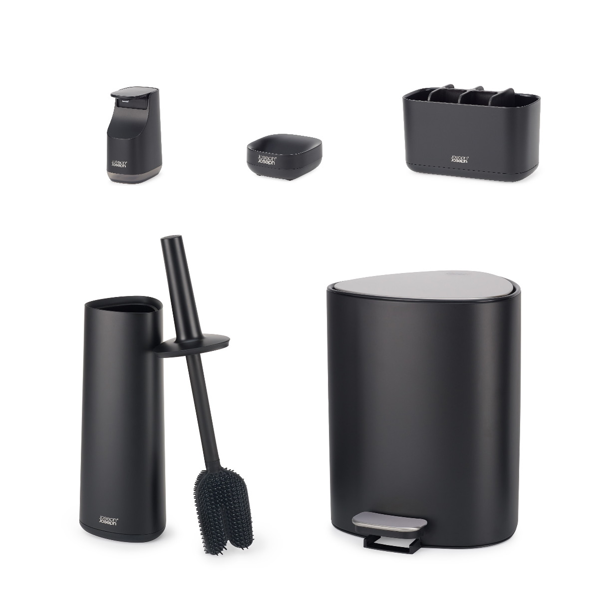 Цей набір, що складається з найнеобхідніших аксесуарів для ванної кімнати нового покоління в елегантному матово-чорному кольорі.