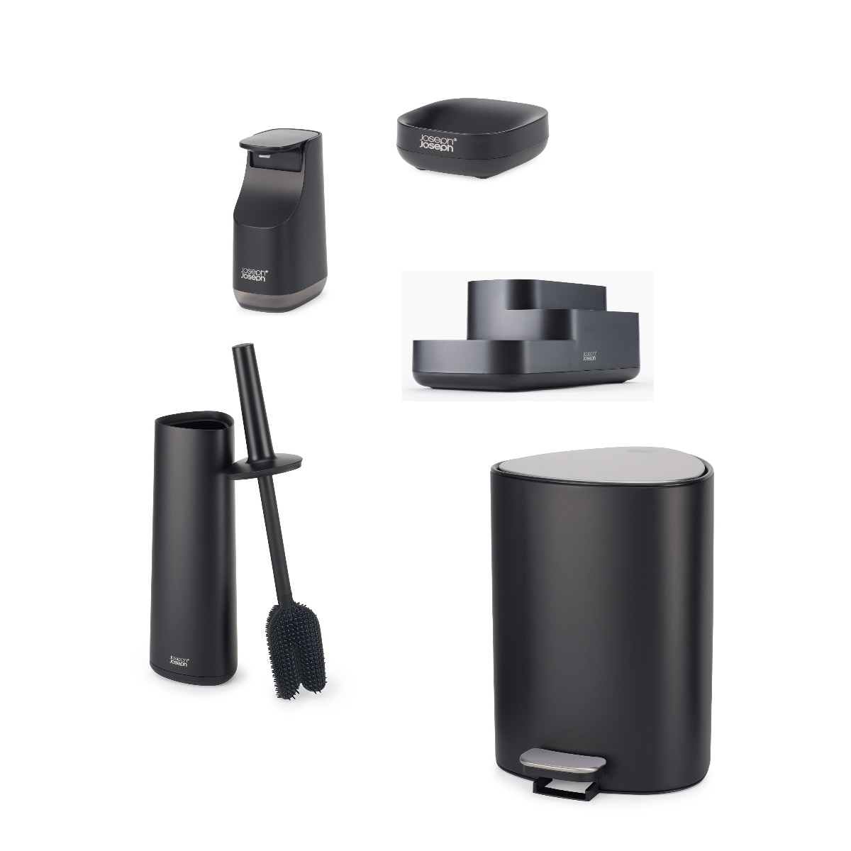 Цей набір, що складається з найнеобхідніших аксесуарів для ванної кімнати нового покоління в елегантному матово-чорному кольорі.