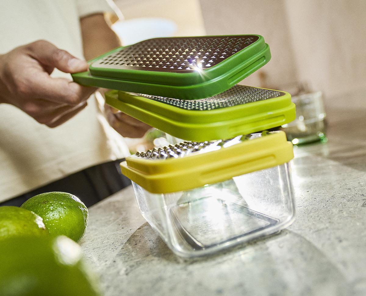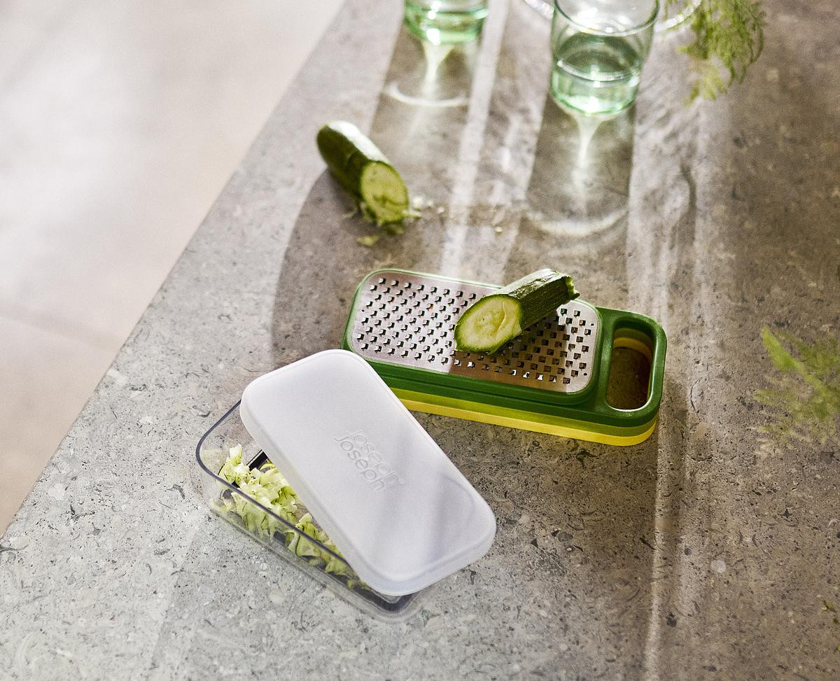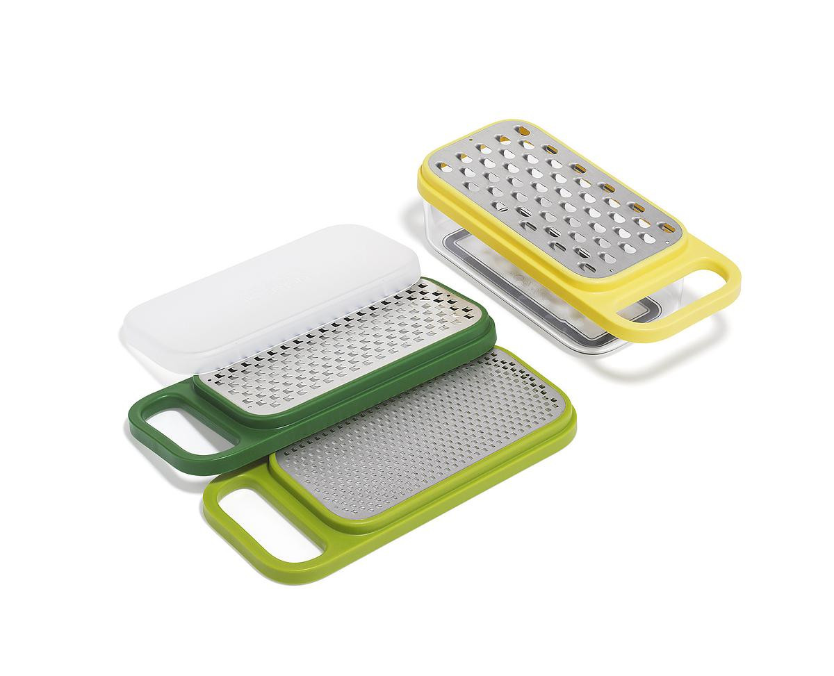 Набір Multi-Grate & Store™ 3-в-1 включає в себе контейнер для збору натертих продуктів, завдяки якому нічого не пропадає даремно.