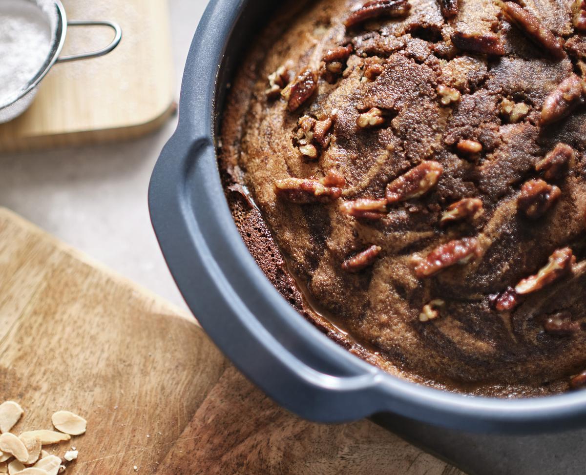 Ця штабельована кругла форма для випічки оснащена зручними ручками з боків, які забезпечують більшу точку захоплення під час носіння рукавичок для випікання, що робить роботу з нею простішою та безпечнішою.