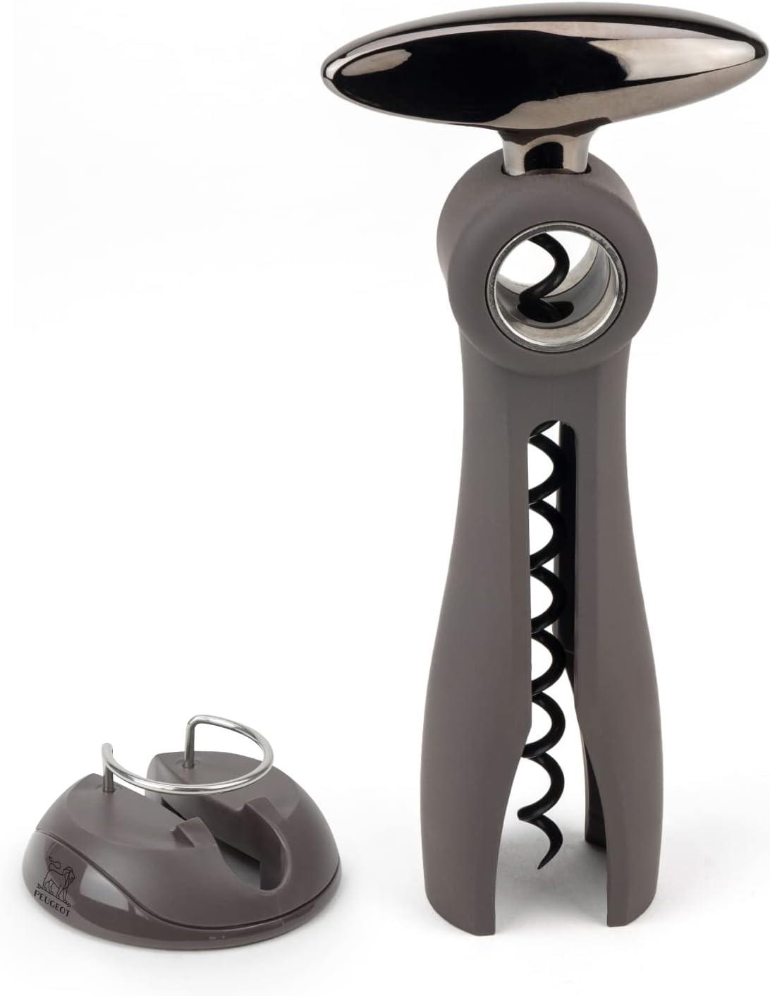 - Цей штопор з безперервним різьбленням елегантно розташований на оригінальній підставці із вбудованим різаком для фольги.