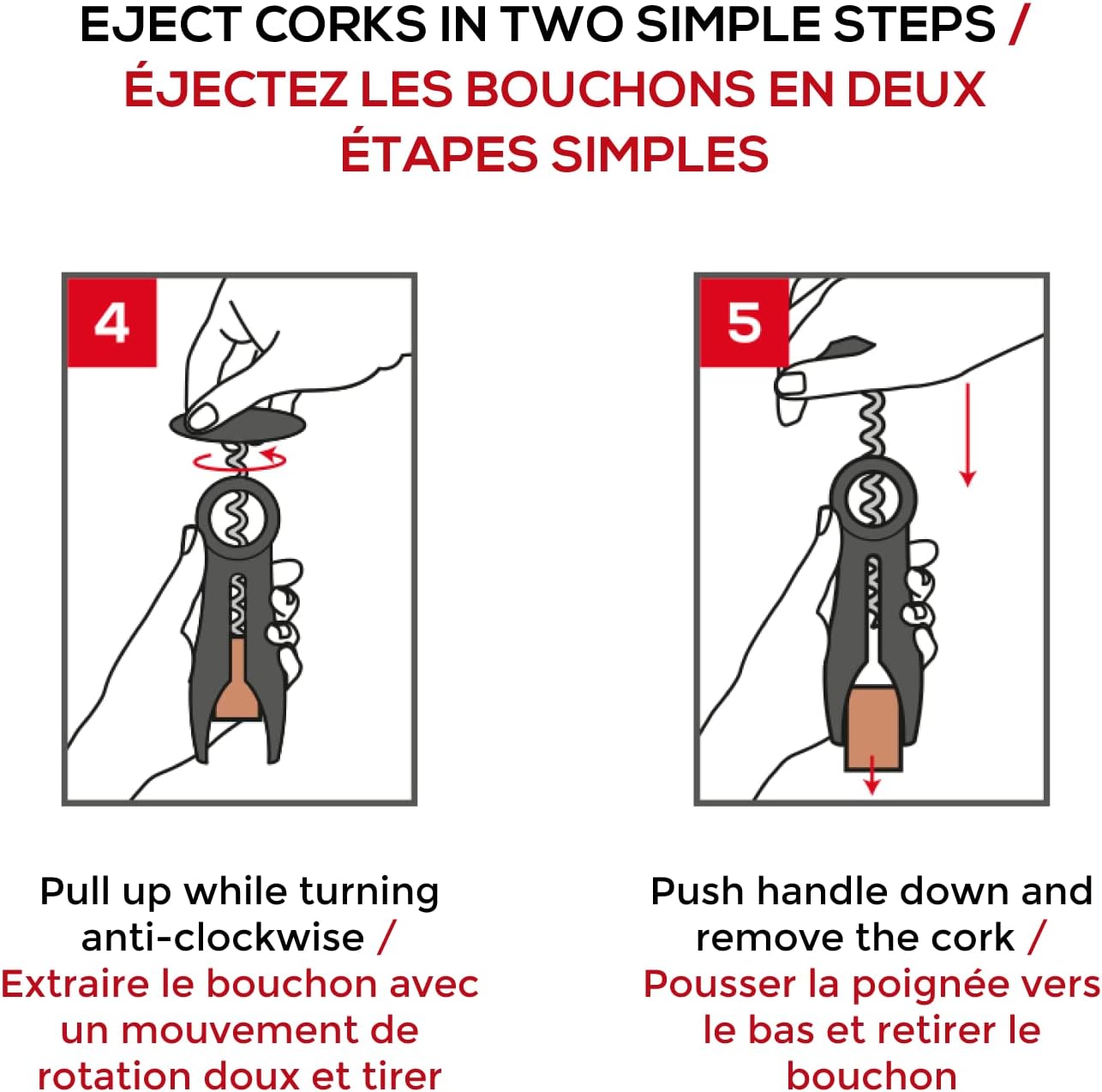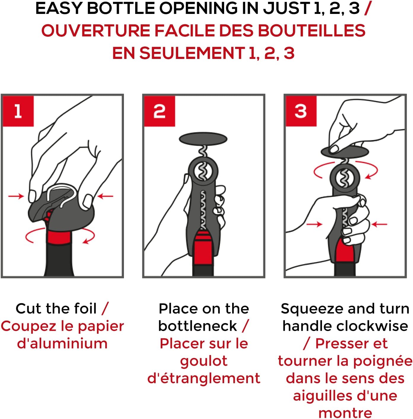 - Цей ручний штопор, оснащений системою безперервного загвинчування, можна використовувати для відкриття пляшок будь-якого типу.