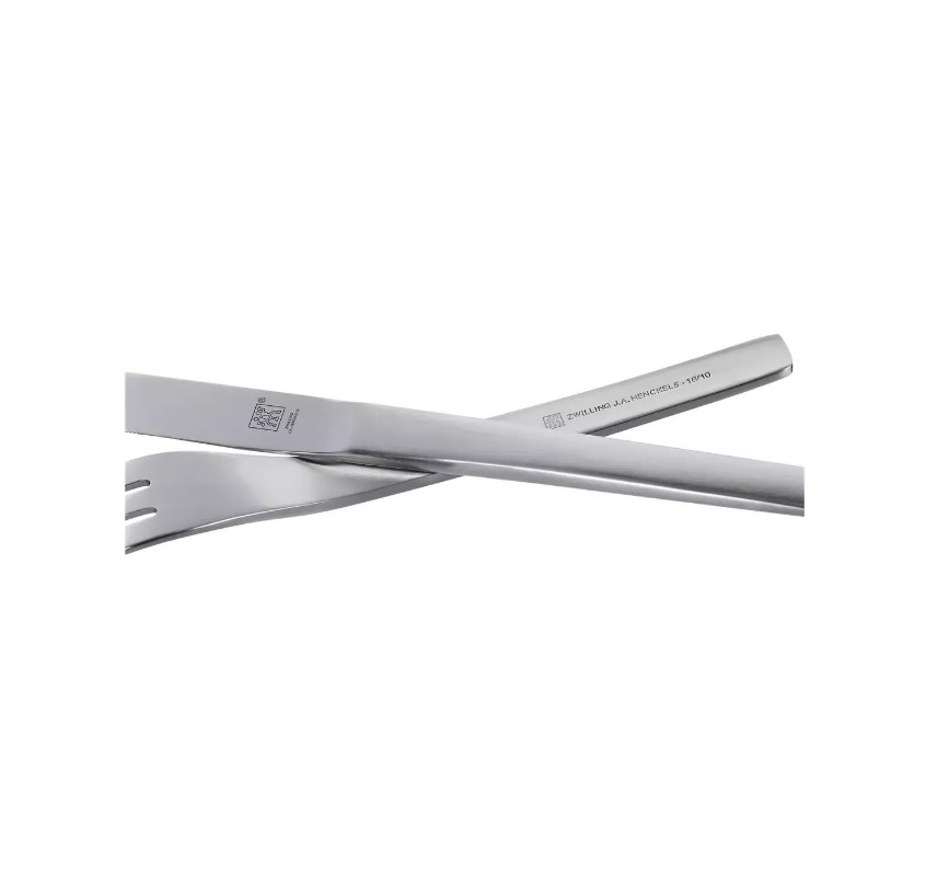 - Набір столового наряддя для стейка Zwilling 07150-312-0 містить ніж з особливо гострим лезом зі спеціальної сталі із зазублинами, який легко розрізає смажені продукти з хрусткою скоринкою і м’яко ковзає навіть через товсті шматки м’яса.